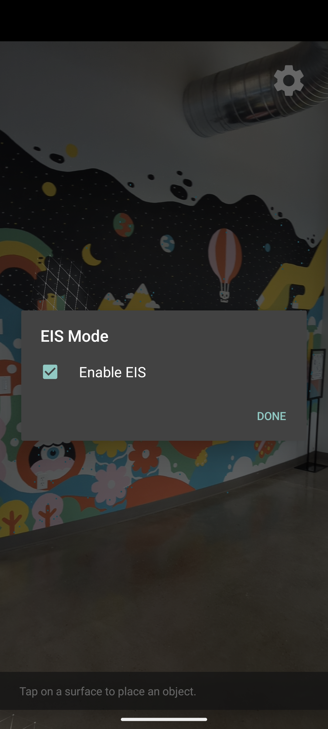 点按齿轮图标,然后选择 Electronic Image Stabilization (EIS) 即可开启/关闭 EIS。选择 Enable EIS 即可启用 EIS。