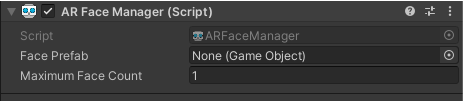 Face Prefab is the Prefab instantiated at the face’s center pose. Maximum Face Count represents the maximum amount of faces that can be tracked.
