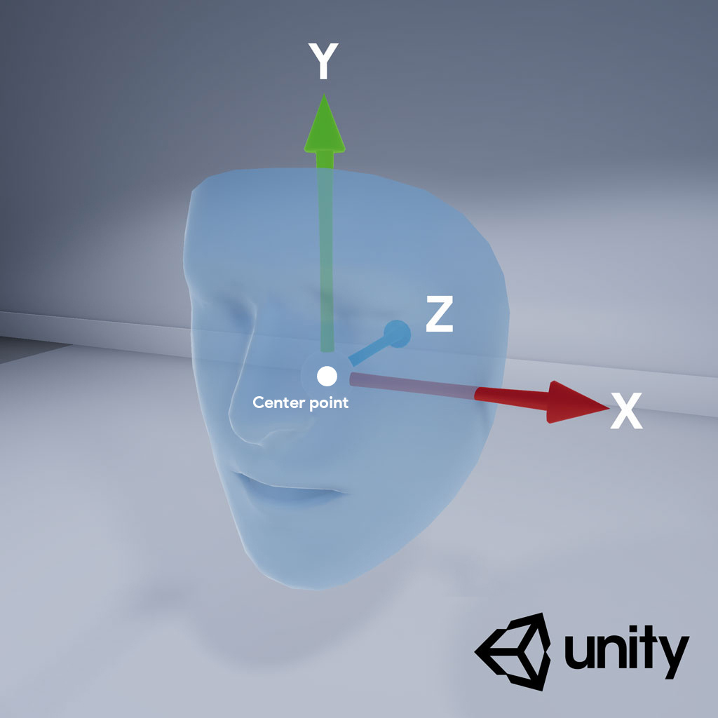 Located on the left forehead, right forehead, and tip of the nose, region poses mark important parts of a user’s face. The region poses follow the same axis orientation as the center pose.