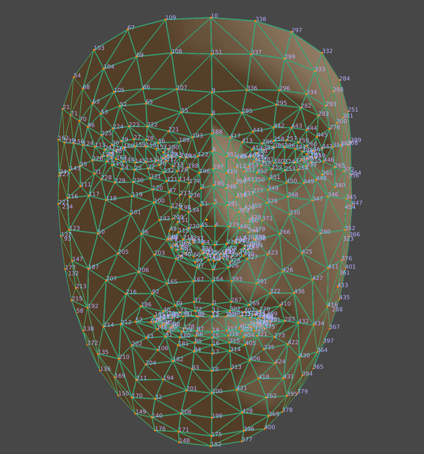 You can use Blender to easily view the index numbers that correspond to a face mesh’s vertices: