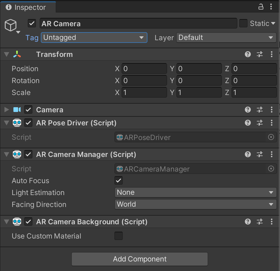 - 在 Hierarchy 标签页中,前往 XR Session Origin > AR Camera。