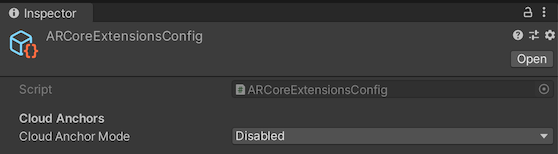 In the Inspector pane's ARCore Extensions Config field, click the target