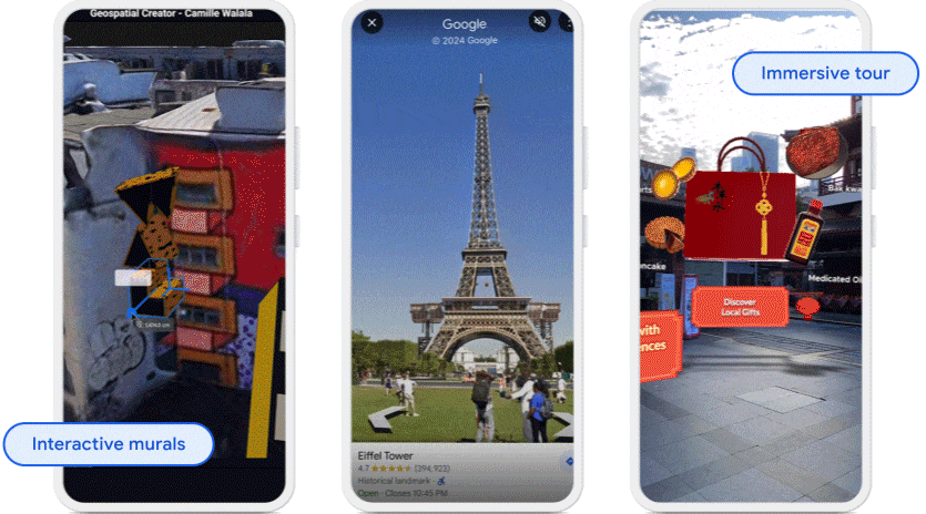 有了採用 ARCore 和 Google 地圖平台技術的地理空間創作工具,開發人員和創作者就能透過「擬真成像 3D 圖塊」,在實際地點以視覺化方式呈現、製作及推出強大且引人入勝的 3D 數位內容。透過即時本地化和即時擴增功能,在幾分鐘內打造沉浸式體驗。