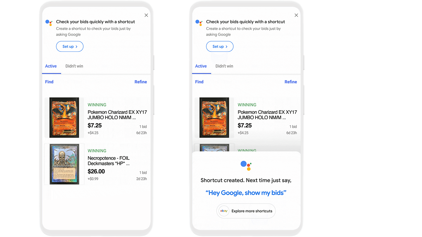 Помогите пользователям создавать персонализированные ярлыки приложений, чтобы быстро и легко получать доступ к своим любимым и часто используемым задачам. Ярлыки появляются, когда вы долго нажимаете на значок приложения, а затем перетаскиваете ярлык на главный экран, чтобы создать значок средства запуска ярлыков. С помощью Google Assistant вы можете вызывать их с помощью голоса. А Google Assistant может предложить пользователям подходящие ярлыки и помочь привлечь трафик к вашему приложению.