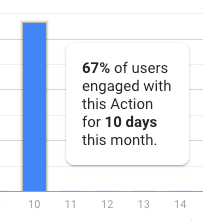 X 軸の各数字は、1 か月にユーザーがアクションを利用した日数を表します。たとえば、4 列は、その月に 4 日間にアクションにエンゲージメントを行ったユーザーの割合を表します。列にカーソルを合わせると、次のスクリーンショットに示すように、この情報を示すポップアップが表示されます。