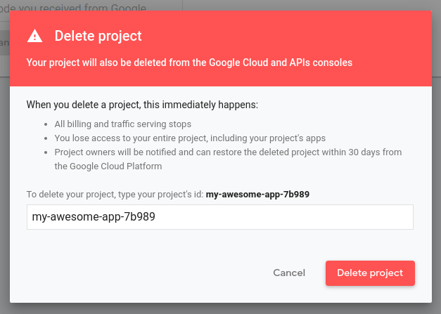 Setelah project dihapus, Asisten tidak akan lagi menayangkan Action Anda kepada pengguna dan setiap peninjauan yang tertunda akan dibatalkan. Anda memiliki waktu 7 hari untuk membatalkan penghapusan dan memulihkan project. Untuk memulihkan project yang telah dihapus, lihat Memulihkan project.