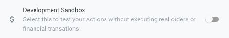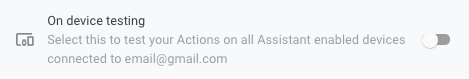 Setelan ini memungkinkan Anda mengaktifkan atau menonaktifkan pengujian pada perangkat fisik. Untuk menguji di perangkat, Anda harus masuk ke akun yang sama dengan yang digunakan untuk membuat project Actions on Google.