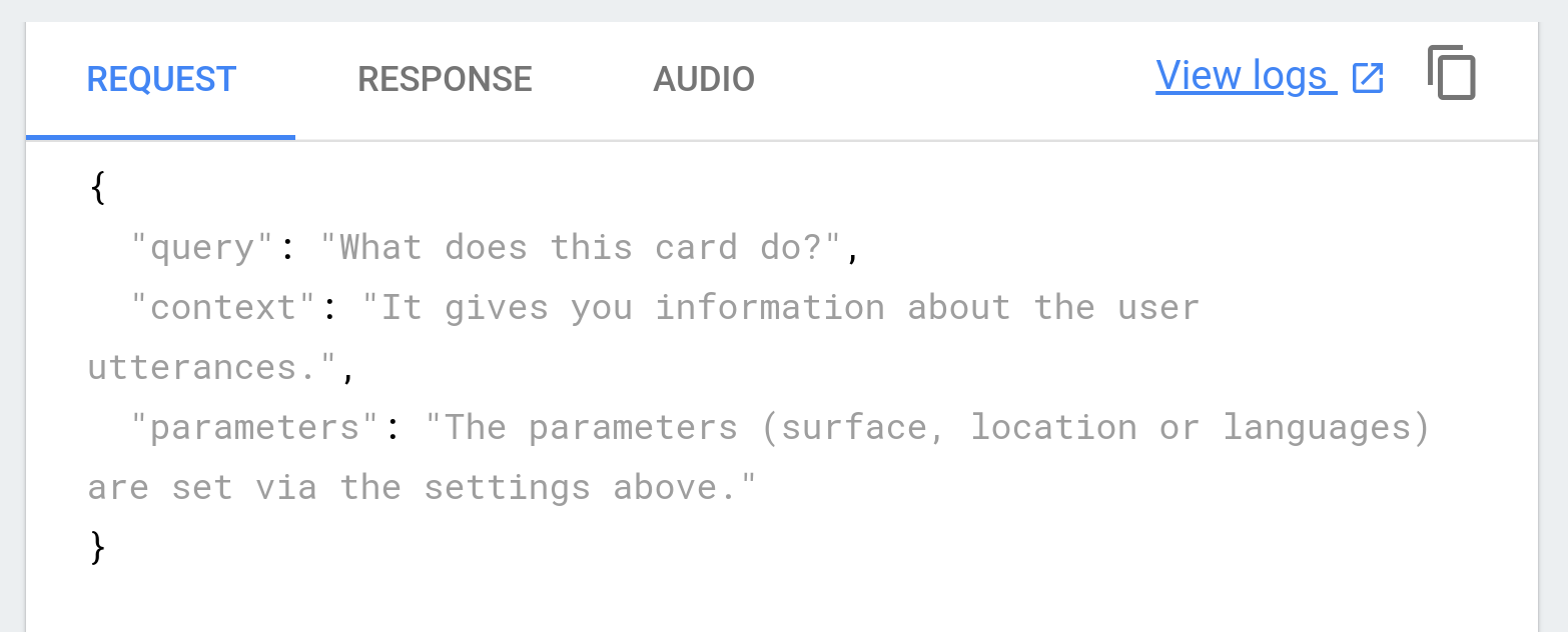 Jika menggunakan Simulator Tindakan untuk menguji Action, Anda dapat dengan cepat mengakses log khusus pengujian dengan mengklik link Lihat Log di pojok kanan atas halaman Simulator Tindakan.