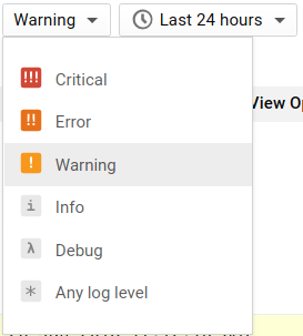 Entri log ditandai dengan level yang menunjukkan urgensi. Jika Anda sedang memecahkan masalah terkait project Action, Anda mungkin harus memulai dengan memfilter peristiwa Critical, Error, dan Warning: