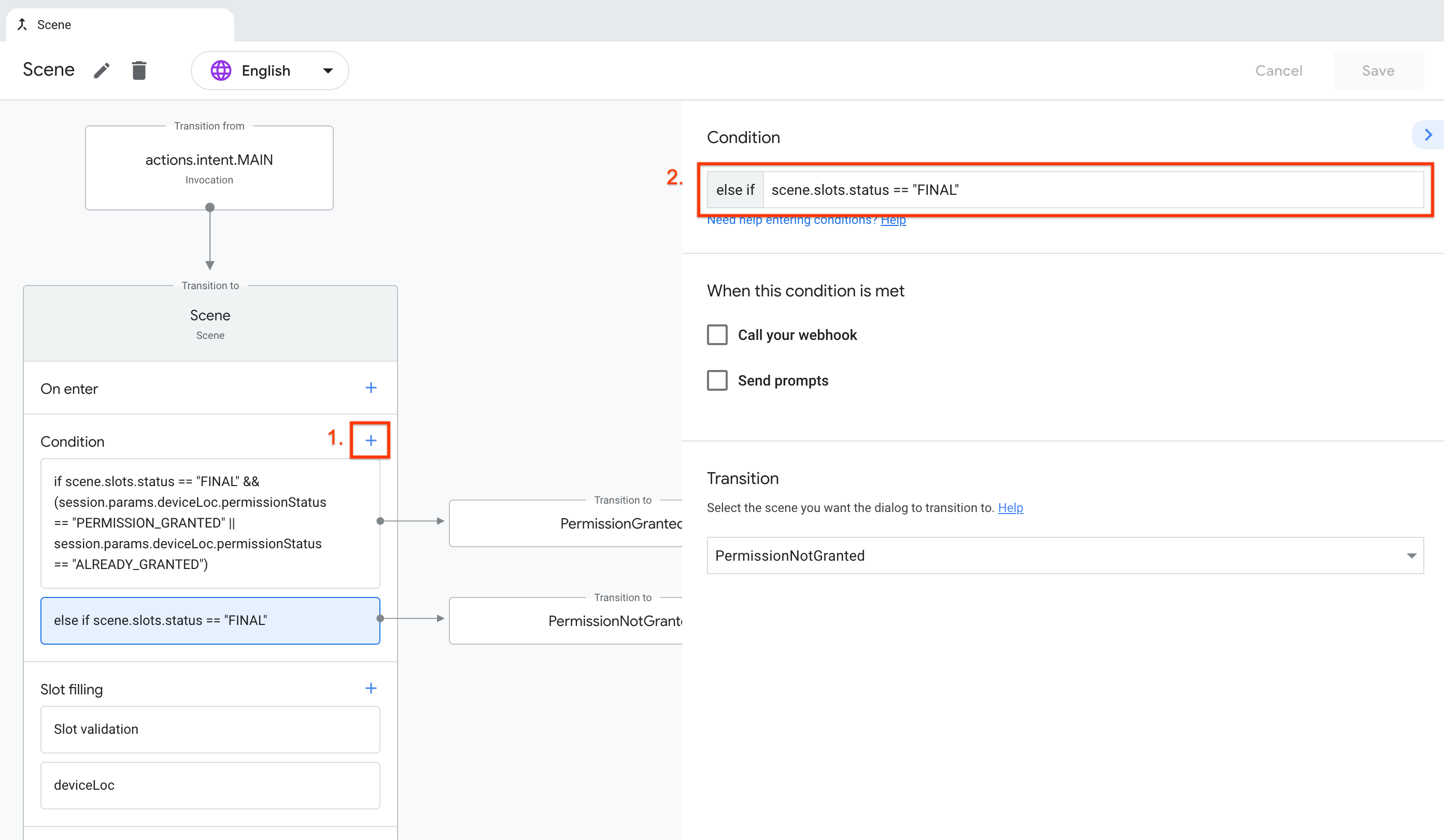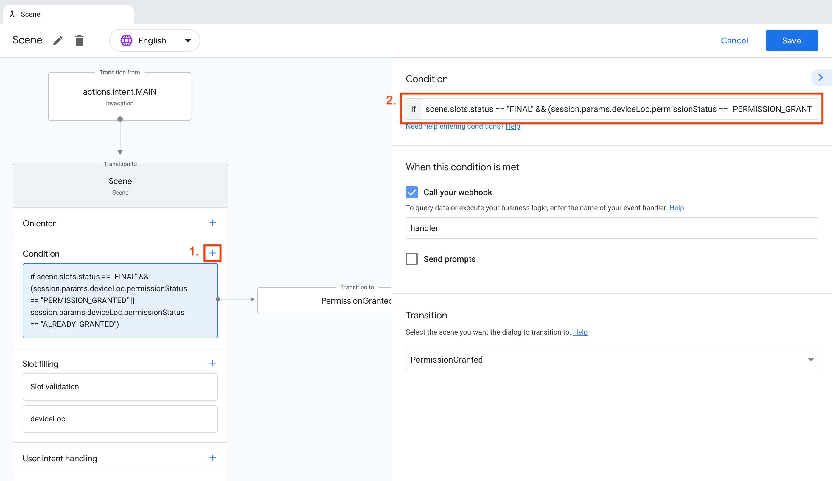 scene.slots.status == "FINAL" && (session.params.<slot_name>.permissionStatus == "PERMISSION_GRANTED" || session.params.<slot_name>.permissionStatus == "ALREADY_GRANTED")