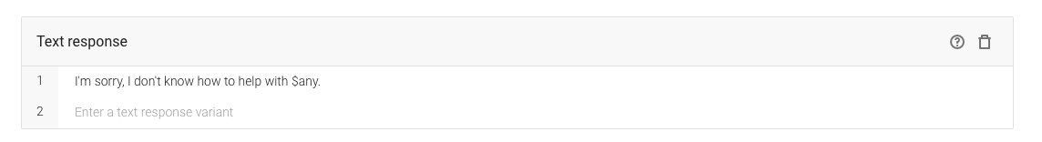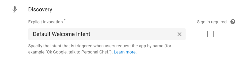 Setiap agen Dialogflow harus memiliki satu dan hanya satu intent yang menangani peristiwa GOOGLE_ASSISTANT_WELCOME. Intent ini dipicu saat pengguna memanggil Action dengan namanya (misalnya, "Ok Google, bicara dengan Fakta tentang Google").
