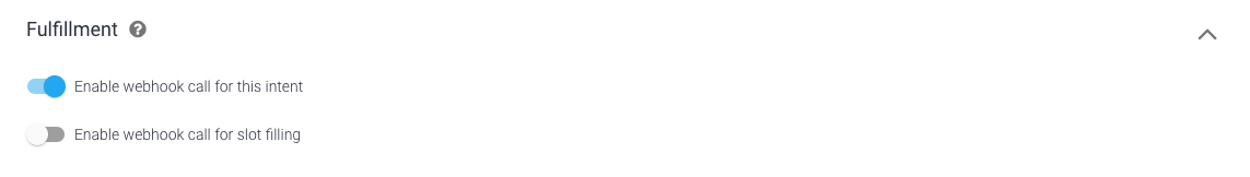 3. Guna mengaktifkan fulfillment untuk intent, scroll ke bagian bawah layar, klik Fulfillment, lalu pilih Enable webhook call for this intent. (Lihat Mem-build fulfillment untuk detail selengkapnya tentang fulfillment.)
