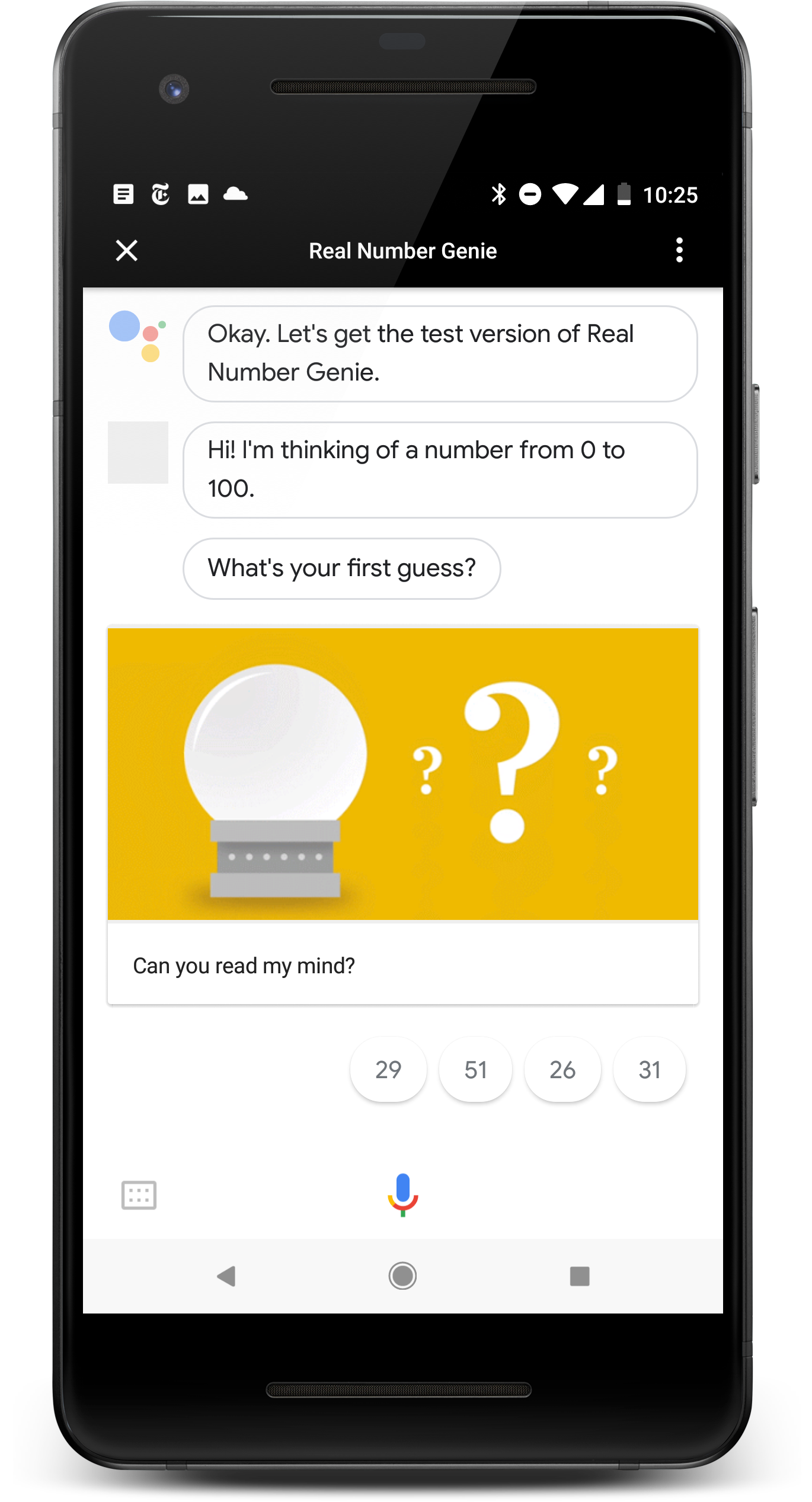 1. Buka simulator Tindakan dengan Tindakan pengujian Anda diaktifkan, atau buka Asisten di perangkat Anda.