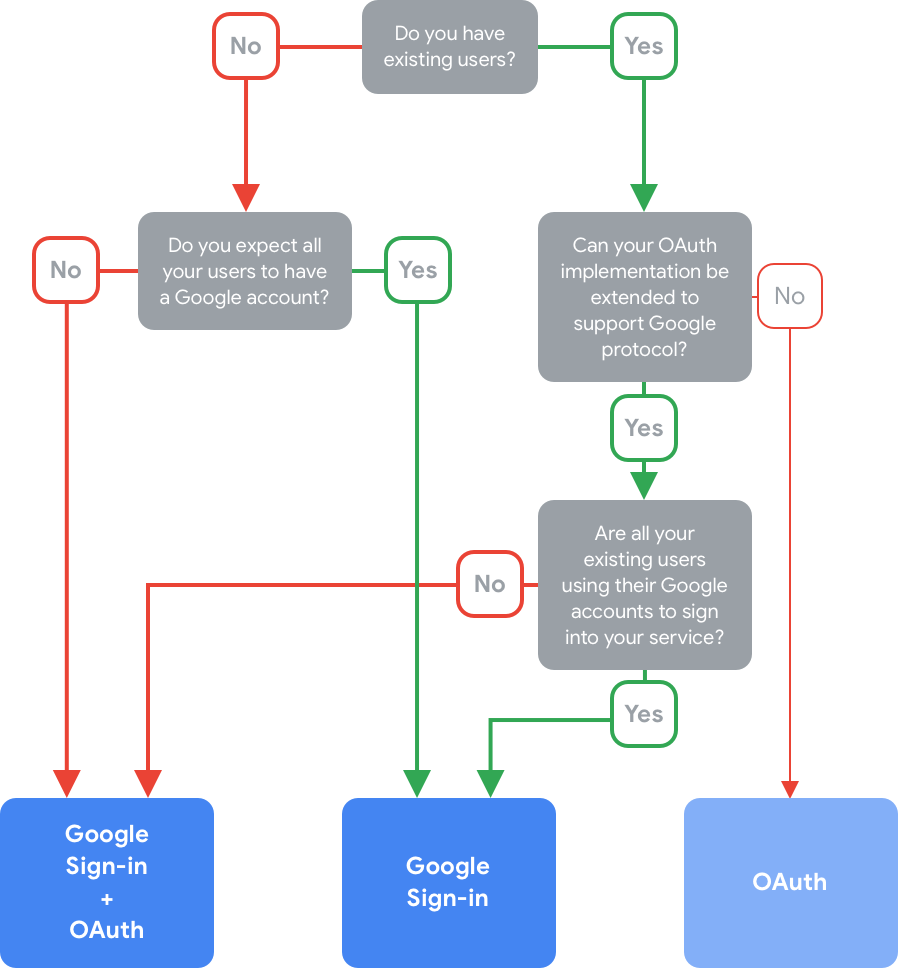 Google tidak merekomendasikan jenis penautan OAuth itu sendiri karena mengharuskan transfer pengguna dari suara ke layar untuk menyelesaikan proses login jika pengguna menggunakan perangkat yang tidak disaring. Anda dapat mempertimbangkan untuk menggunakan alur ini jika sudah memiliki penerapan server OAuth 2, dan Anda tidak dapat memperpanjang endpoint pertukaran token untuk menambahkan dukungan bagi protokol Google untuk penautan otomatis dan pembuatan akun dari token ID. Untuk informasi selengkapnya, lihat Panduan konsep OAuth.