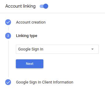 const {dialogflow, SignIn} = require('actions-on-google'); const app = dialogflow({ // REPLACE THE PLACEHOLDER WITH THE CLIENT_ID OF YOUR ACTIONS PROJECT clientId: CLIENT_ID, }); // Intent that starts the account linking flow. app.intent('Start Signin', (conv) => { conv.ask(new SignIn('To get your account details')); }); // Create a Dialogflow intent with the `actions_intent_SIGN_IN` event. app.intent('Get Signin', (conv, params, signin) => { if (signin.status === 'OK') { const payload = conv.user.profile.payload; conv.ask(`I got your account details, ${payload.name}. What do you want to do next?`); } else { conv.ask(`I won't be able to save your data, but what do you want to do next?`); } });