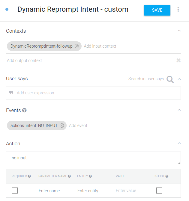 dan beri nama intent Anda, seperti "Reprompt".