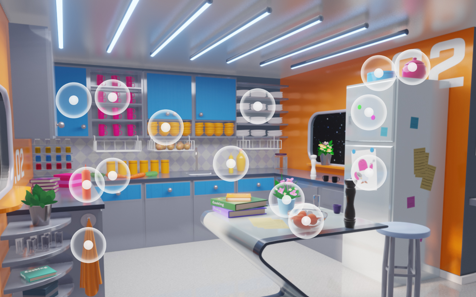Game Cookie Detective menggunakan sentuhan untuk memilih tempat persembunyian.Sentuh sebagai pelengkap untuk suara: Berikan input sentuh sebagai cara alternatif
