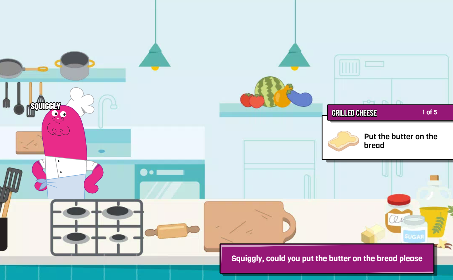 Game untuk anak-anak ini menggunakan petunjuk visual dan kartu saran yang dapat diketuk.
