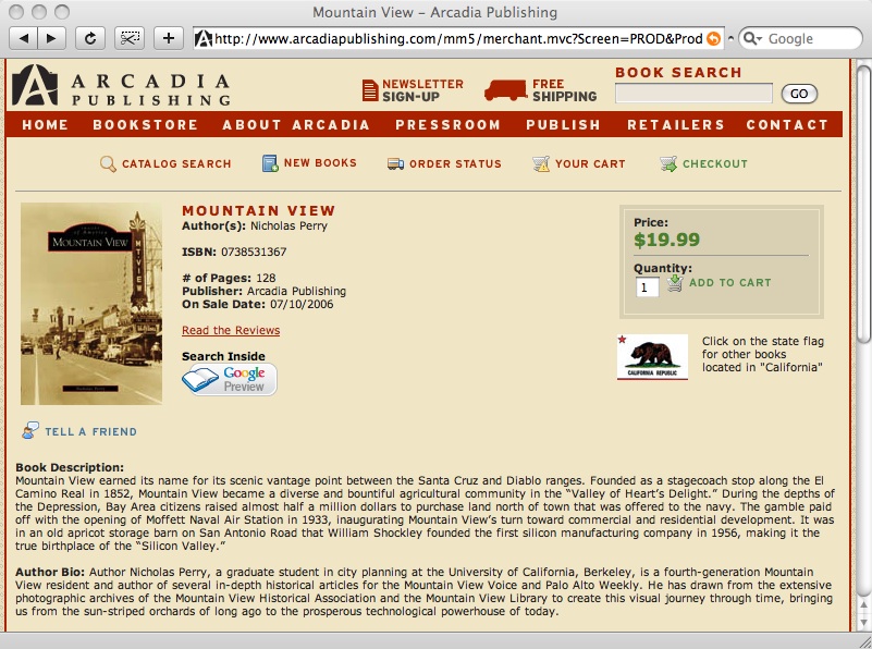 Arcadia Publishing 在网站刚刚启动时就与 Google 图书搜索合作,并对通过这种关系产生的流量和销售量非常满意。现在,通过 API 集成,Arcadia 网站本身的访客可以一窥镇上的历史,看看里面的家人、朋友和地标,Arcadia 希望这可以增加销售额。