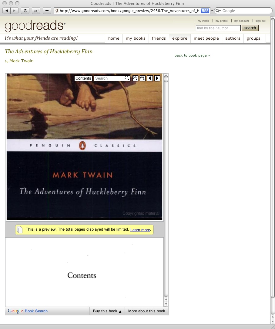 חברת Goodreads מצטינת ועוזרת לאנשים למצוא ספרים שהם רוצים לקרוא, באמצעות המלצות מחברים או מקוראים אחרים בעלי טעמים דומים. עם זאת, שלא כמו בחנות ספרים אמיתית, החברים לא יכולים לאסוף ספר שהם חושבים שהם רוצים לקרוא ולדפדף בו. הטמעת תצוגה מקדימה של ספר באמצעות ממשקי Google Book Search API תעזור לשנות זאת, ולאפשר למנויים לעיין בספרים באינטרנט ישירות באתר. זה יהיה שירות חשוב מאוד לחברים שסקרנים לגבי ספר ושוקלים לקרוא אותו.