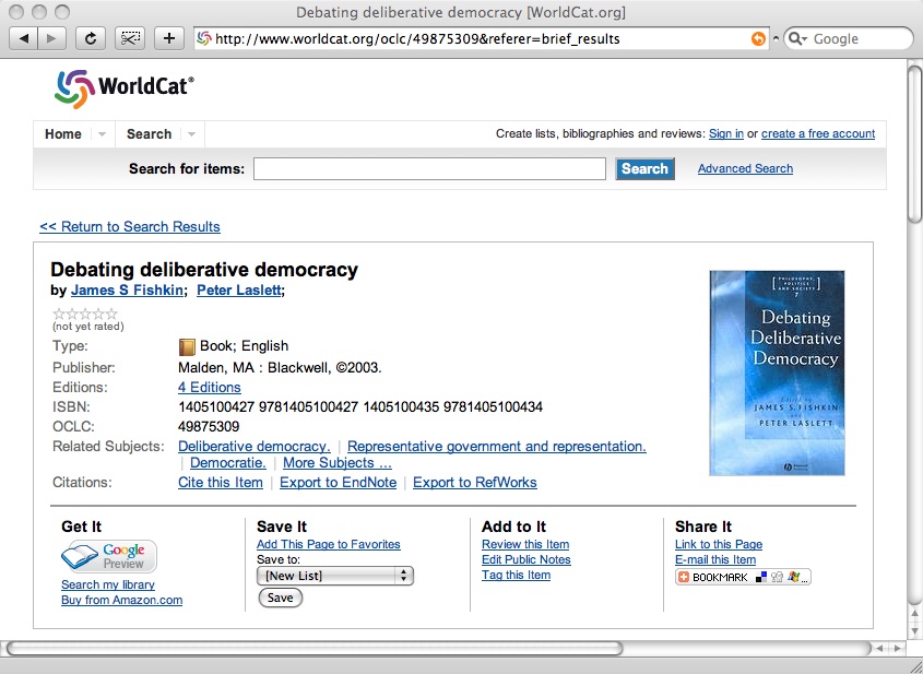 API Tìm kiếm Sách của Google này cũng sẽ làm phong phú thêm trải nghiệm của khách truy cập vào WorldCat.org vì người tìm thông tin giờ đây có thể xem văn bản được số hoá đầy đủ trong WorldCat.org. Họ càng có thể tìm thấy nhiều thông tin trong WorldCat.org thì khả năng họ kết nối với các thư viện càng lớn. Giờ đây, WorldCat.org sẽ được xem là nhà cung cấp nhiều nội dung đánh giá hơn, giúp đưa những người dùng bắt đầu tìm kiếm trên web trở lại thư viện.