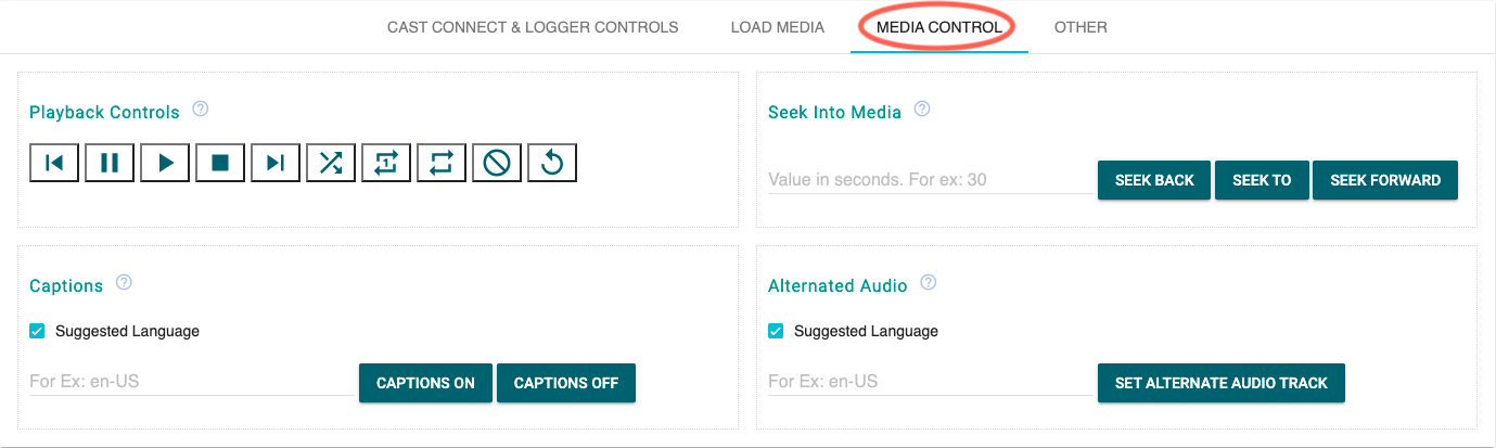 L'outil CaC simule également commandes vocales envoyées par l'Assistant Google vers votre application Web Receiver. Vous pouvez vérifier si les commandes multimédias que votre application fonctionne correctement. Les commandes multimédias non compatibles doivent être traitées de manière appropriée le type et les motifs de l'erreur.