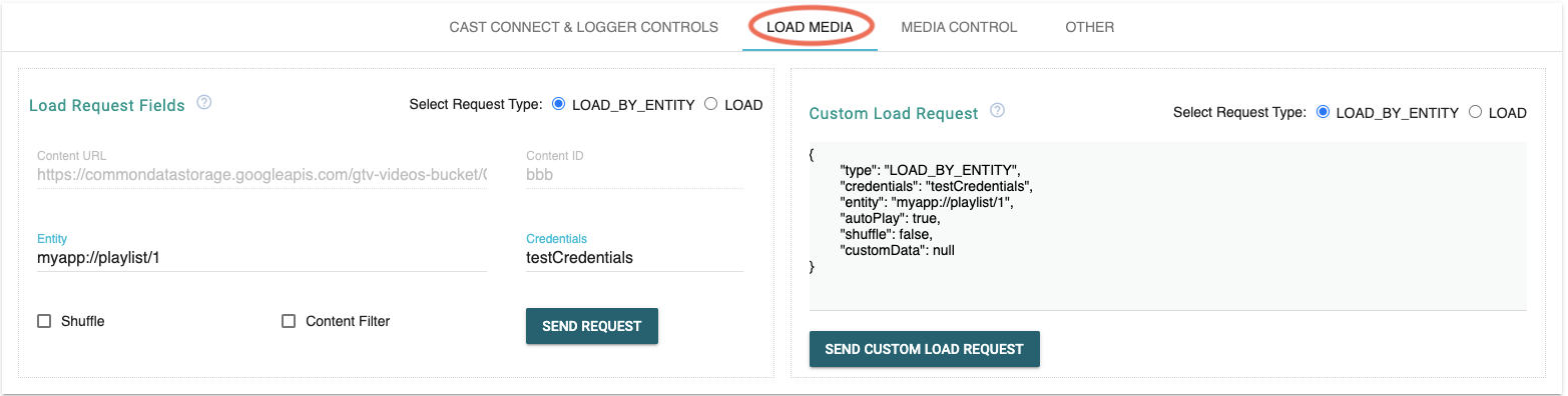 no campo Solicitação de carregamento personalizada, na guia LOAD MEDIA. Primeiro, selecione