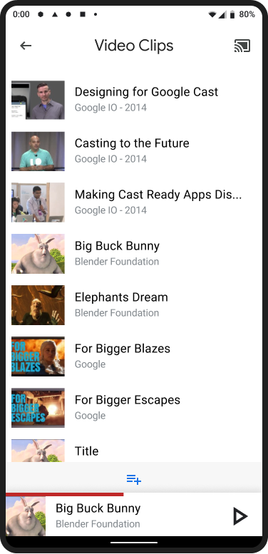 O receptor reproduz o conteúdo e reflete o estado dele para o usuário. O destinatário precisa responder imediatamente às ações no app do remetente . Por exemplo, quando o conteúdo é pausado no receptor, um ícone de pausa é exibido. Quando o usuário pressiona o botão de reprodução no app remetente, o receptor começa a reproduzir o conteúdo e remove o ícone de pausa.