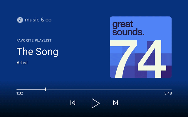 B   ऑडियो रिसीवर के लिए, सभी मेटाडेटा एलिमेंट को सुरक्षित क्षेत्र के ऊपर रखें और कोई भी कंट्रोल एलिमेंट न दिखाएं. स्क्रीन पर टैप करने पर, सिस्टम प्लेयर कंट्रोल दिखाएगा.