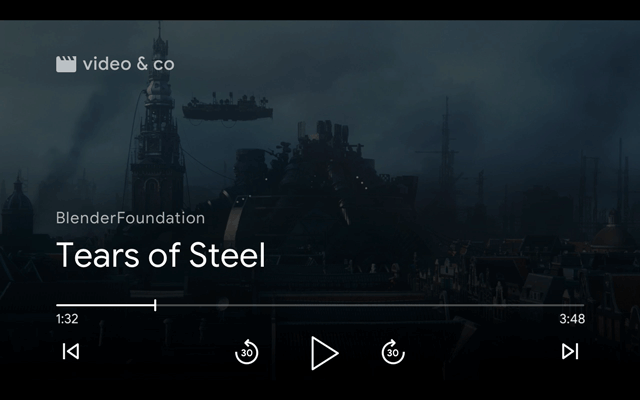 E 動画レシーバでは、再生中(一時停止中を含む)にレシーバにメタデータやコントロール要素を表示しないようにして、システムによって表示されるコントロールと競合しないようにします。