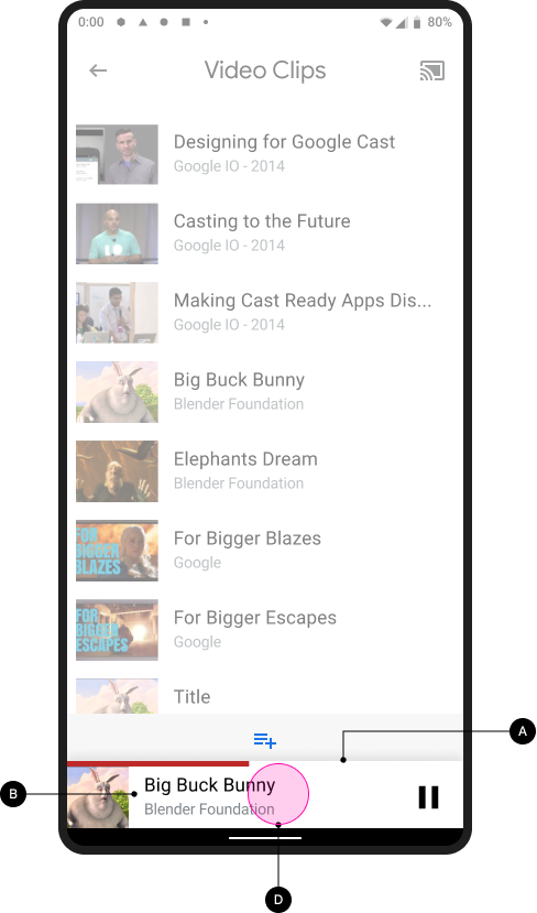 Pour une expérience utilisateur optimale, fournissez des commandes dans la boîte de dialogue Cast en plus du lecteur petit format.