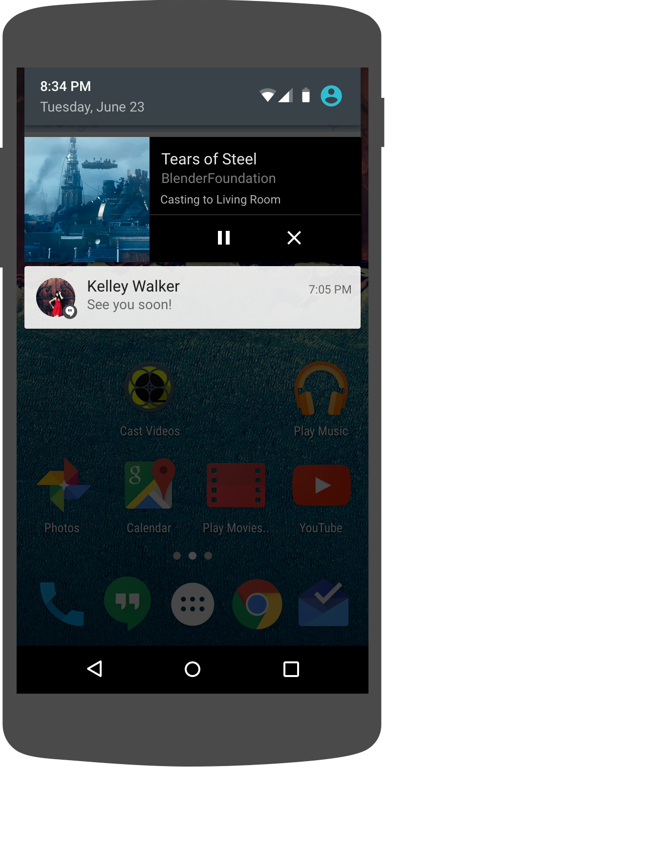 A 在状态栏的通知中使用应用图标(而非 Cast 图标)。