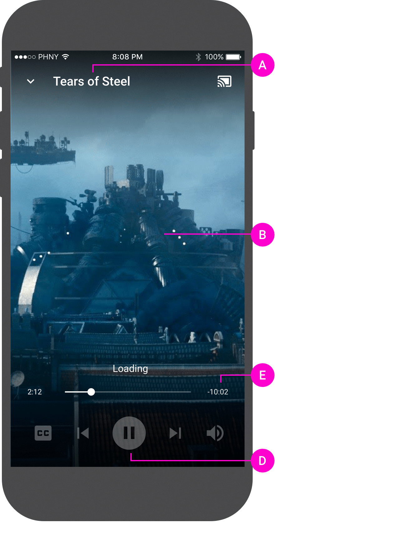 B Trước khi bắt đầu phát, hãy hiển thị chỉ báo tải và tiêu đề hoặc ảnh bìa nội dung.