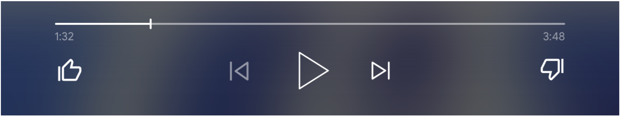 כשהערך של supportedMediaCommands שווה ל-ALL_BASIC_MEDIA, פריסת הבקרה שמוגדרת כברירת מחדל תוצג כך: