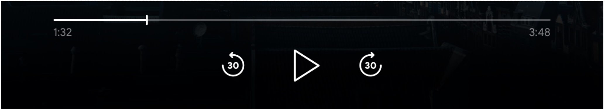 जब supportedMediaCommands की वैल्यू ALL_BASIC_MEDIA के बराबर होगी, तब डिफ़ॉल्ट कंट्रोल लेआउट इस तरह दिखेगा: