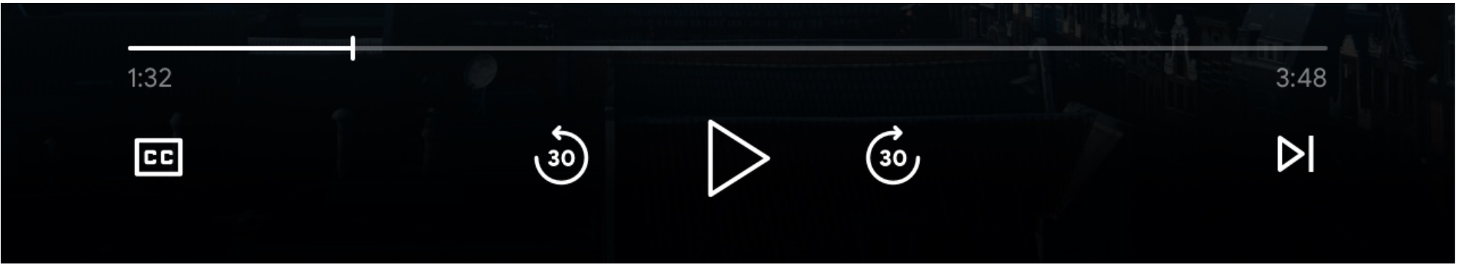 当 supportedMediaCommands 的值等于 ALL_BASIC_MEDIA 时,默认控件布局将如下所示: