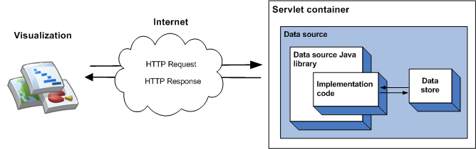 L'implementazione più semplice della libreria prevede l'ereditarietà da una singola classe, l'implementazione di una funzione membro ed l'esecuzione dell'origine dati come servlet all'interno di un container servlet. Nell'implementazione più semplice, la seguente sequenza di eventi si verifica quando una visualizzazione esegue una query sull'origine dati: