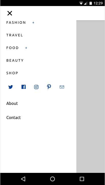 此代码使用 CSS 媒体查询以及 amp-sidebar 和 amp-accordion AMP 组件。