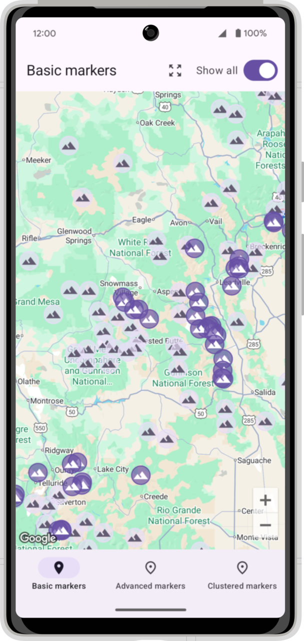 此 Codelab 介绍了如何通过构建一个可使用各种类型的标记显示美国科罗拉多州山脉地图的应用,将 Maps SDK for Android 与您的应用集成以及使用其核心功能。此外,您还将学习如何在地图上绘制其他形状。