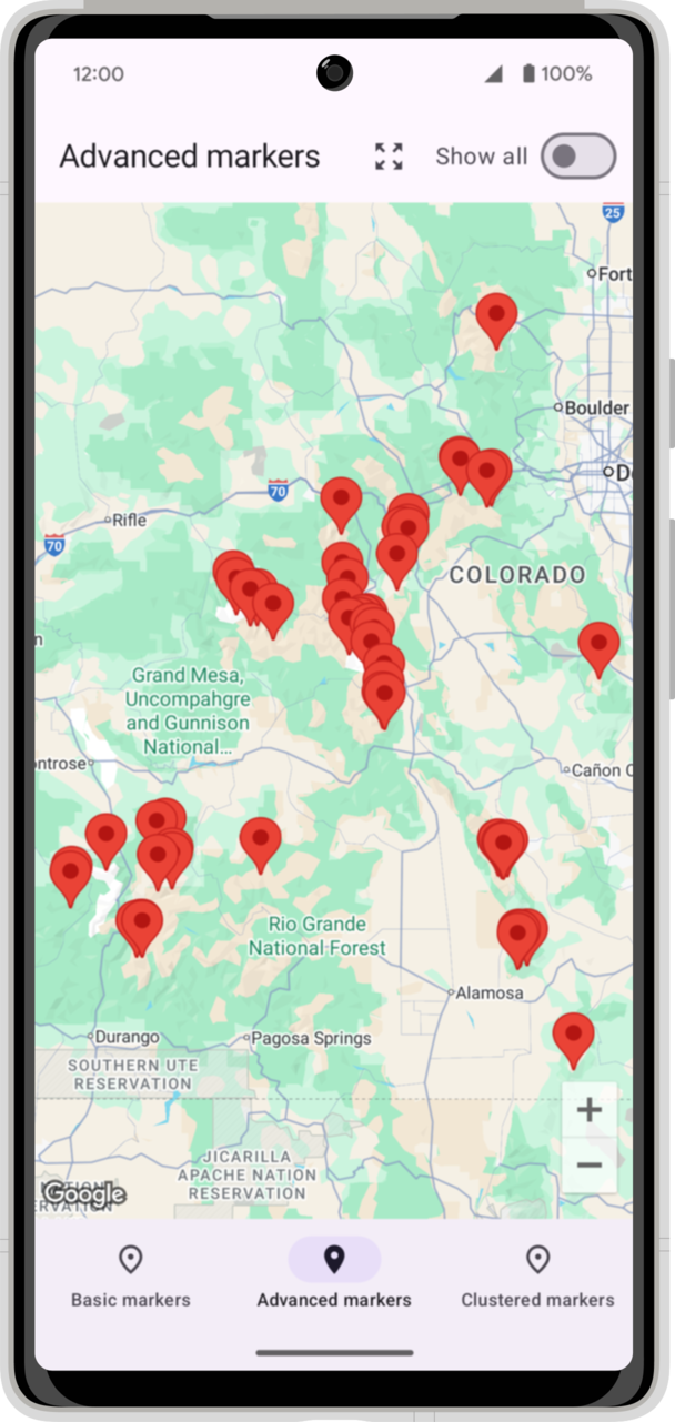 W tym laboratorium kodowania dowiesz się, jak zintegrować pakiet Maps SDK na Androida z aplikacją i korzystać z jego podstawowych funkcji. W tym celu utworzysz aplikację, która wyświetla mapę gór w Kolorado w Stanach Zjednoczonych za pomocą różnych typów znaczników. Dowiesz się też, jak rysować na mapie inne kształty.