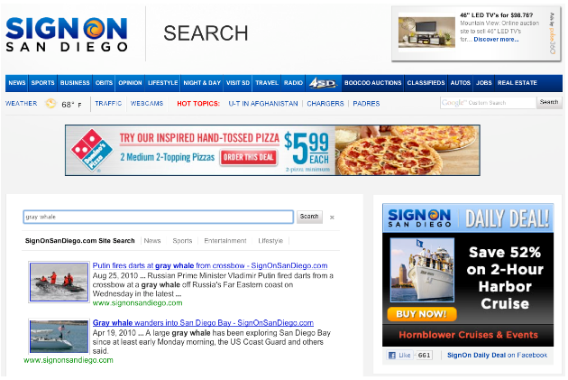 a site like SignOnSanDiego might enable users to search for articles