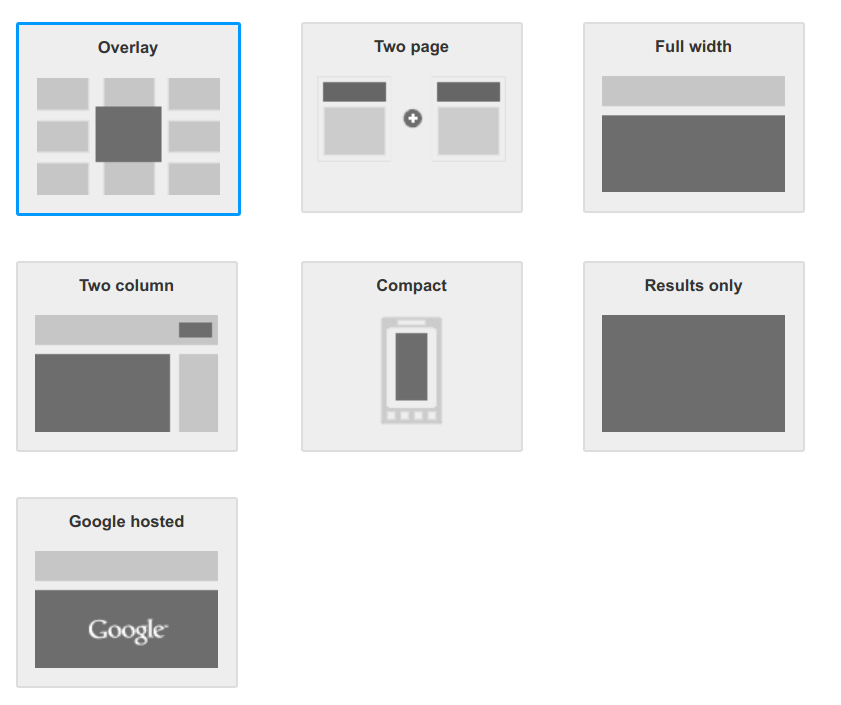 Anda juga dapat memanfaatkan Programmable Search Element Control API untuk menyesuaikan UI penelusuran lebih lanjut. Banyak penyesuaian didukung melalui atribut HTML. Misalnya, Anda dapat memilih enam tata letak untuk halaman hasil, atau Anda dapat menetapkan jumlah hasil penelusuran yang akan ditampilkan.