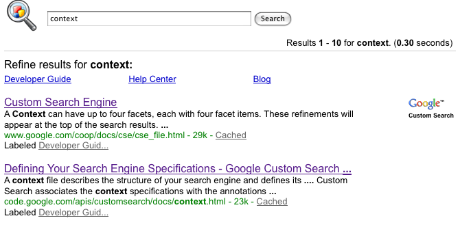 Catatan: Bagian hasil penelusuran juga berisi kotak penelusuran. Pengguna dapat mengirimkan kueri langsung di halaman hasil penelusuran. |
