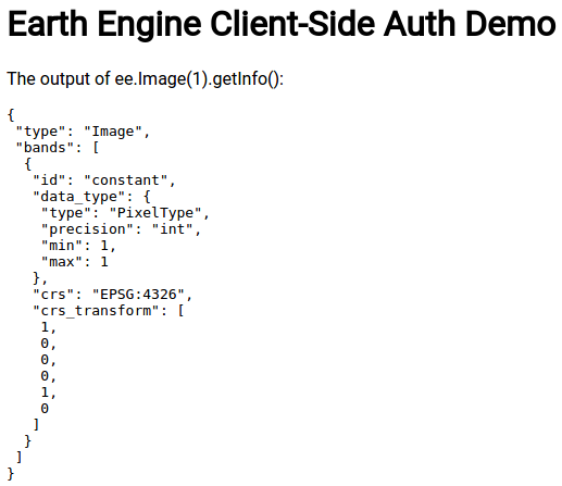 此示例演示了从客户端进行身份验证的 OAuth 流程。具体而言,用户需要以自己的身份进行身份验证(即他们已经是 Earth Engine 用户)才能使用该应用。为此,需要从开发者控制台中设置 JavaScript 源和授权重定向。