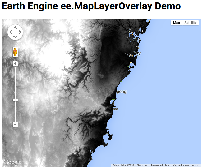 此示例还使用了客户端授权流程。该示例演示了如何使用 ee.MapLayerOverlay 通过回调函数将 Earth Engine 数据添加到地图,以跟踪已加载的图块数量。(此演示中的所有映射功能都可以使用服务器上生成的 mapid 完成,如服务器身份验证演示中所示)。