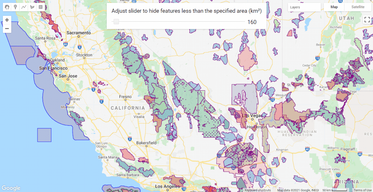 خصائصها. على سبيل المثال، لفلترة المناطق المحمية الأصغر من منطقة معيّنة
