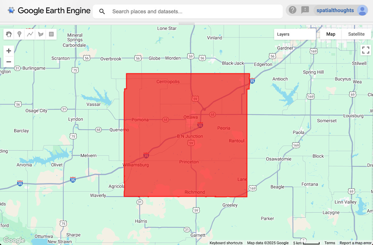 Map.addLayer(geometry, {color: 'red'}, 'Search Area');