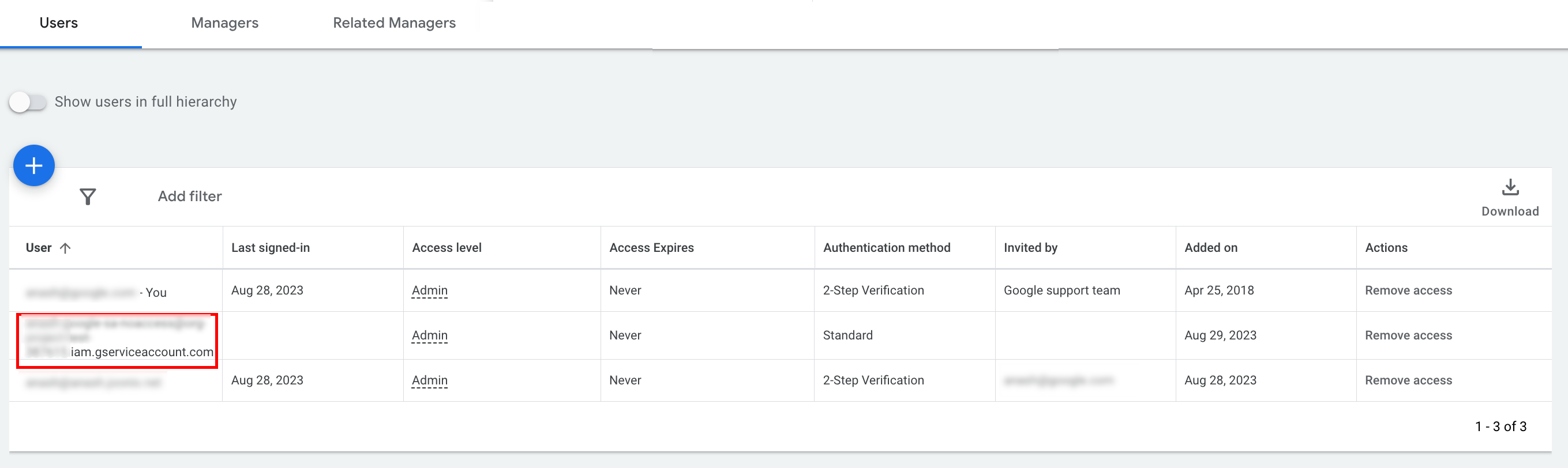 หากต้องการเรียก API ไปยังลูกค้า Google Ads คุณต้องให้สิทธิ์การเข้าถึงและสิทธิ์ที่เหมาะสม แก่บัญชีบริการของคุณในบัญชีลูกค้า Google Ads หากต้องการดำเนินการนี้ คุณต้องมีสิทธิ์เข้าถึงระดับผู้ดูแลระบบในบัญชีลูกค้า
