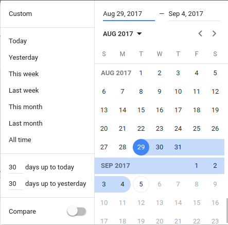 | Rentang Tanggal | Rentang tanggal dipetakan ke klausa WHERE yang memfilter segments.date. |