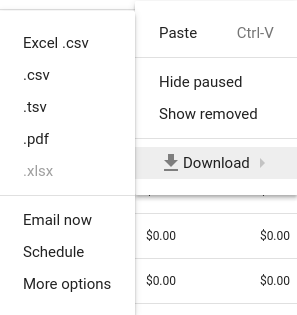 В пользовательском интерфейсе отчеты можно загружать в различных форматах, таких как CSV, TSV или XML.